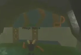 Located inside the gray house right from the giant red tree. | |