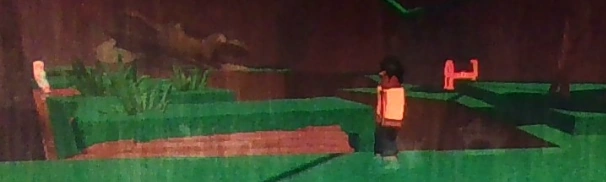Past Cool Teen Beckett on a raised area after climbing the wooden plank. | |